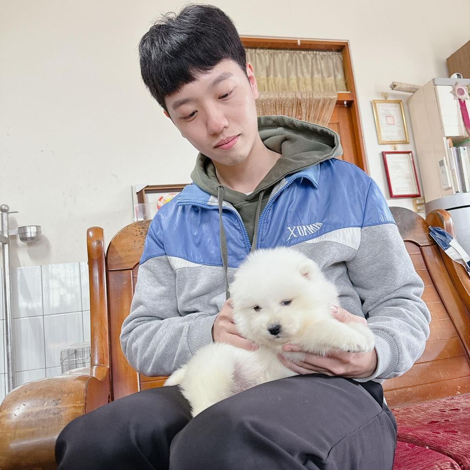 被一位文質彬彬的小帥哥選中的幸運薩摩耶寶寶今天將帶回桃園新家 緣份就此牽連一輩子